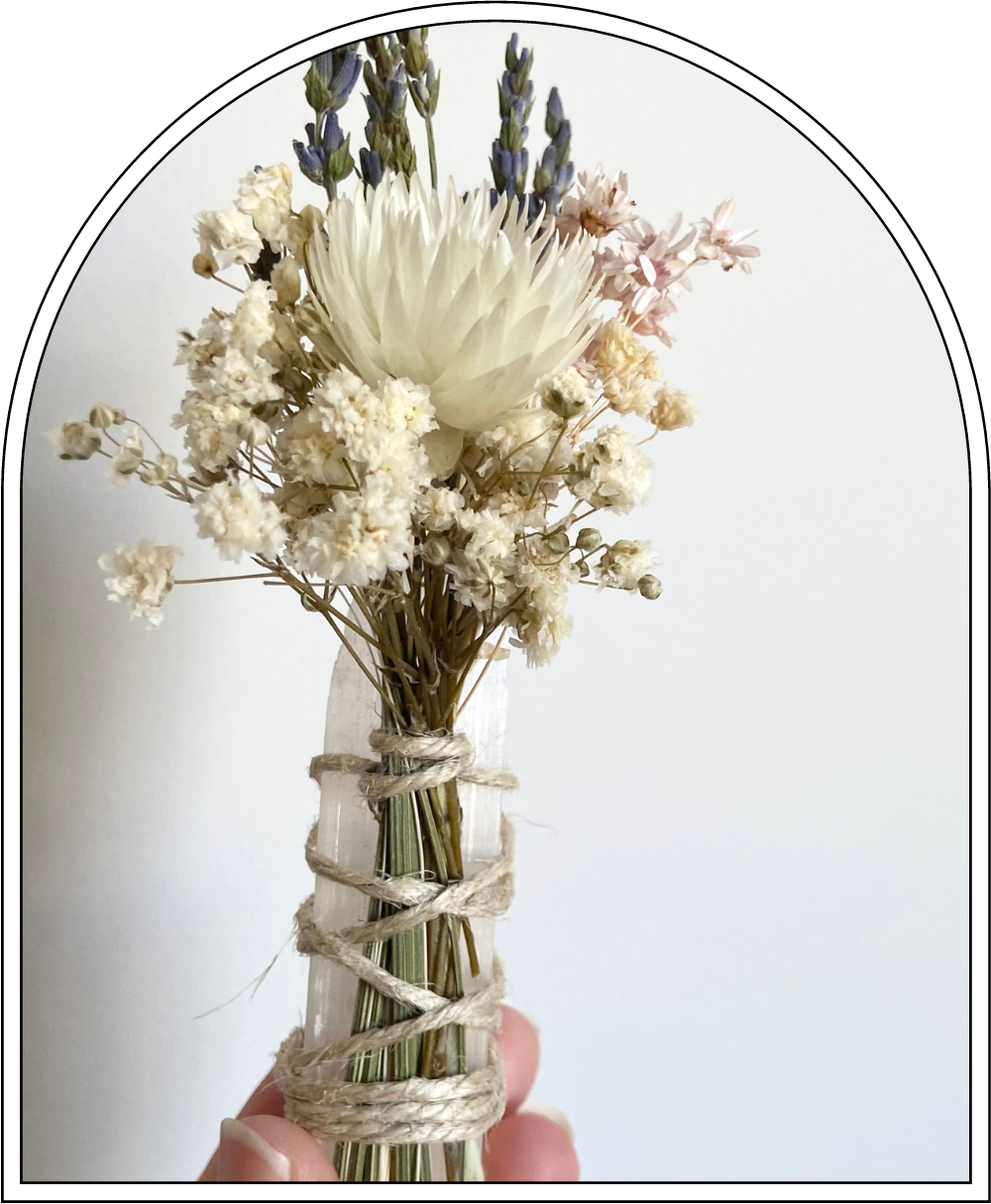 Palo Santo is an essential tool in sacred rituals for smudging and is well known for it’s energetic cleansing and healing properties as well as invites positive thoughts and feelings. The sweet aroma of palo santo and provides an uplifting scent that calms the mind and raises your energetic vibration. The dried posy with lavender and selenite crystal are separately tied from the palo stick so you can use the flower posy and crystal as a cute keepsake. Wrapped in jute string twin bow unbranded to make them your own.